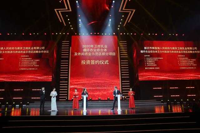 第二项是,与新沂市棋盘镇人民政府签约的卫岗新沂田园综合体项目,总投资2亿元,规划建设3000头奶牛标准化养殖基地和乡村旅游与休闲农业示范园;